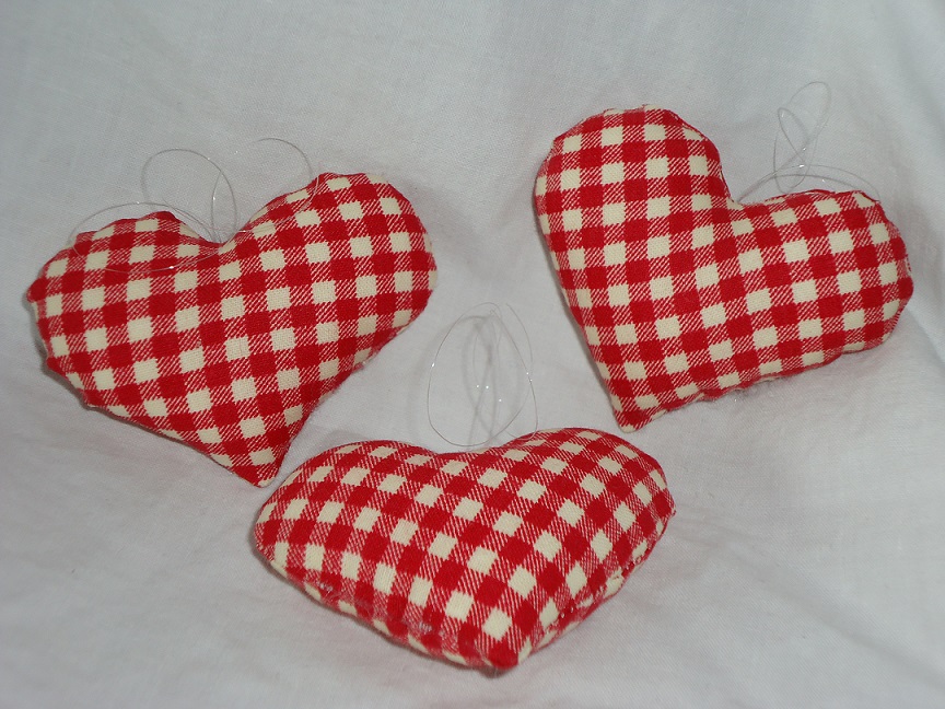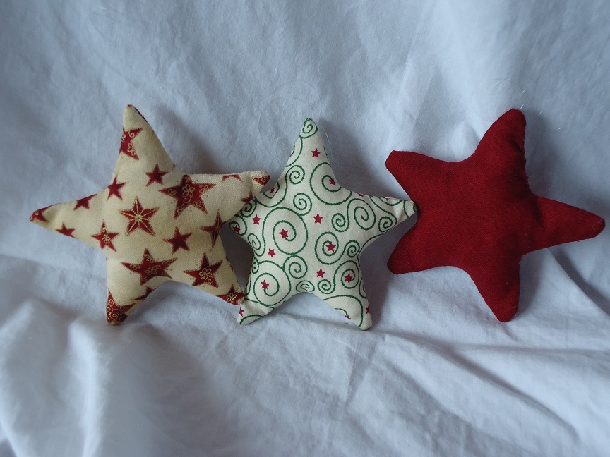 Aus Baumwollstoffen, gefüllt mit Softflocks und einem Nylonfaden zum aufhängen. bis 40°C waschbar. Maße ca.: |