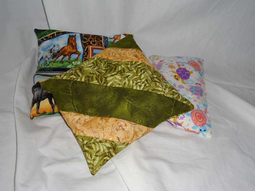 Aus Baumwollstoffen, mit Kirschkernen gefüllt. Zum Erwärmen kurz in die Mikrowelle legen.