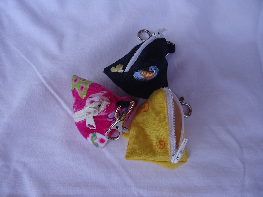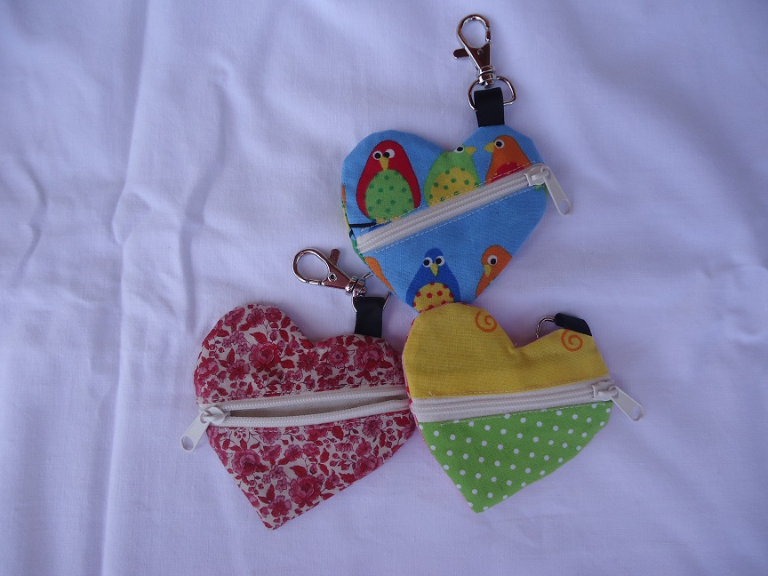 Die Schlüsselanhänger gibt es als Herz oder Pyramide. Beide mit Reißverschluß und Karabinerhaken. Praktisch für Notgroschen, Einkaufswagenchip, Essensmarken und dergleichen. Maße Herz ca. Pyramide ca. |