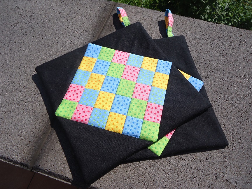Aus Baumwollstoffen, gefüttert mit Thermolam, einem hitzebeständigem Vlies. Maße: ca. 20cm x 20cm waschbar bis 40°C |