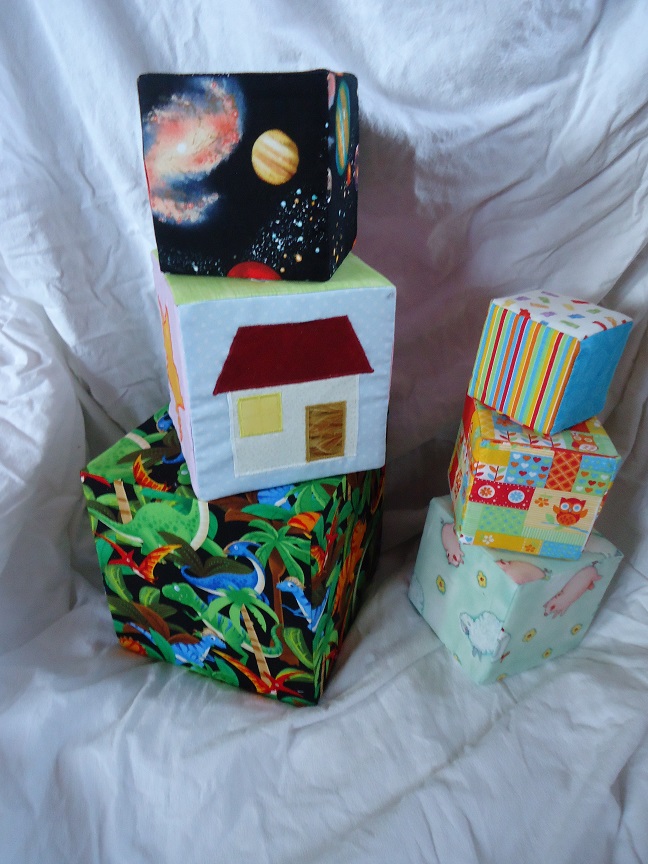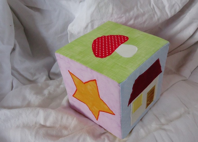 In den Größen: 5cm, 8cm, 10cm, 12cm, 15cm, 20cm Innen jeweils ein Schaumstoffwürfel in der entsprechenden Größe und einem Glöckchen. Zum Teil mit Aplikation Auf dem größten Würfel können die Kleinen sogar sitzen. |