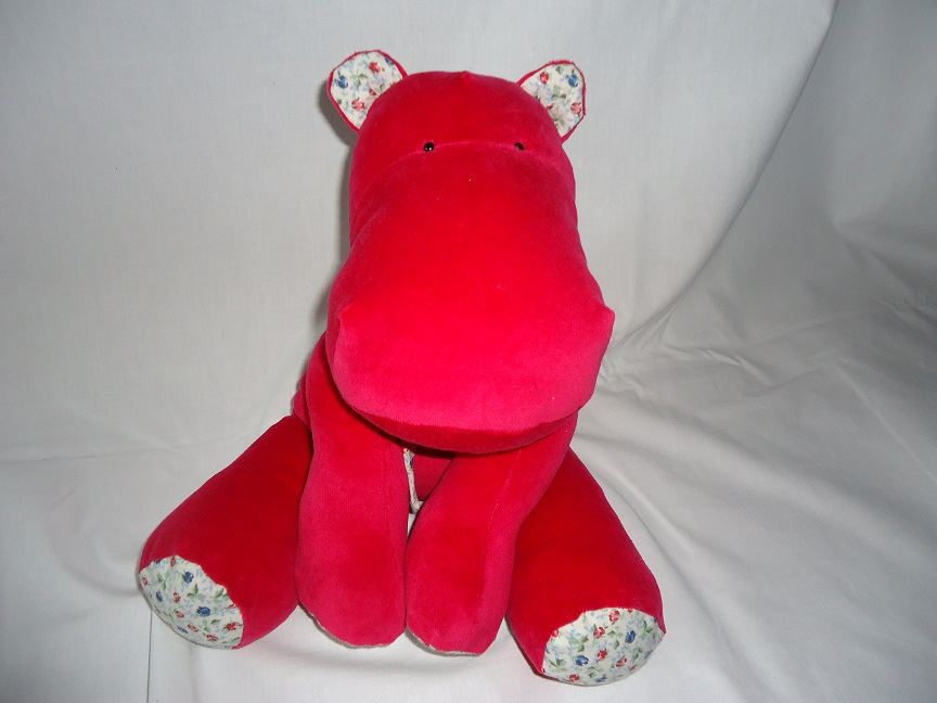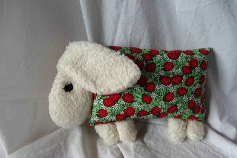 Der Körper ist aus Baumwolle, Kopf und Füße aus Baumwollplüsch. Die Augen sind Knöpfe, die fest zusammenangenäht sind. Gefüllt mit Softflocks. Maße Körper: ca. 30cm x 20cm |
