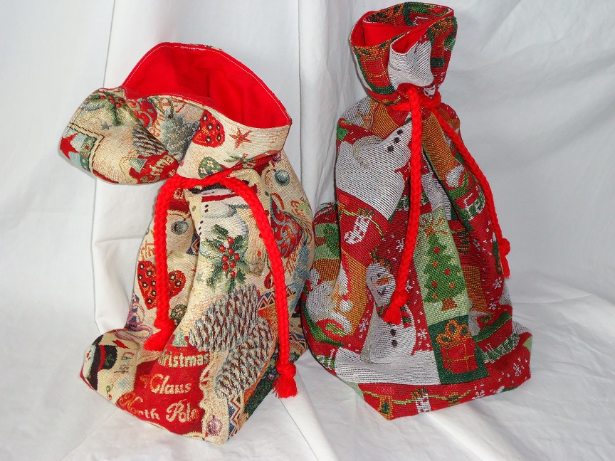 Stoff außen: weihnachtlicher/ winterlicher Gobelin, Stoff innen: einfarbiger Baumwollstoff Mit dicker Kordel zum Verschließen Maße ca. |